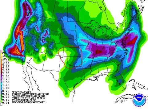 Précipitation prévue du 21 au 27 mars aux États-Unis