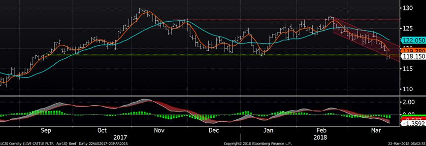 Le marché du porc a sévèrement chuté hier sous la crainte que la Chine impose des représailles aux États-Unis après que les importations chinoises soient clairement ciblées par Trump. Hier, les prix d’avril, juin et juillet baissent de -1.25¢, -1.75¢ et -1.40¢. La mauvaise nouvelle est que la Chine a riposté cette nuit et imposera des tarifs de 25% sur quelques biens américains…. dont le porc! En fait, quelques aliments américains seront taxés par la Chine à 15% (fruits, noix, vins et alcool dénaturé) alors que le porc et l’aluminium recyclé seront taxés à 25%. En 2017, la Chine et Hong-Kong ont acheté 12.5% des exportations américaines. Inévitablement, le marché du porc risque de réagir négativement à cette nouvelle, on s’attend à ce que l’ouverture d’aujourd’hui ce fasse à la baisse. Apparemment, le marché du porc n’a pas encore atteint son creux avec ces mauvaises nouvelles.