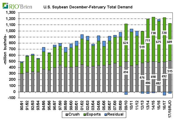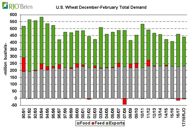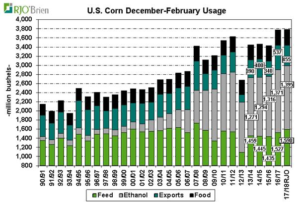 · Les estimés pour l’utilisation de Dec-Fev seront à un record de 3.845 milliard de boisseaux, versus 3.774 milliard l’an dernier.