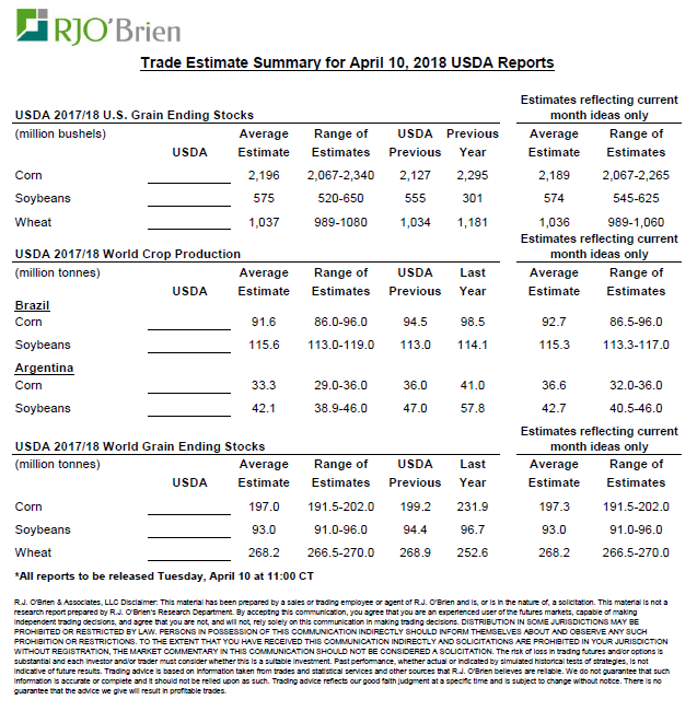 Demain, comme à chaque mois, le ministère de l’agriculture aux USA dévoile son bilan offre-demande. Le rapport de demain pourrait être intéressant parce que l’USDA a besoin de faire des ajustement sur l’ancienne récolte compte tenu des inventaires de grain plus élevés que prévu (rapport du 29 mars dernier). L’impact est sur l’ancienne récolte. Pour votre info le bilan nouvelle récolte ne sera pas abordé demain, il le sera en mai. Donc demain on ne parle pas de surface ou de rendement aux USA, mais bien d’inventaire d’ancienne récolte. Je pense que ça peut être intéressant car les stocks américains sont en abondance et j’ai bien hâte de voir leurs perspectives pour les cultures Sud-Américaine et l’exportation. À mon avis le ministère risque d’abaisser la production de fève/maïs en Argentine pour se rapprocher de firmes privées. Dans la fève l’USDA est à 47MMT en Argentine mais on pense que cela va tomber dans les bas 40-44 million de tonnes. (Buenos Aires Grain Exchange sont à 38MMT). Similaire dans le cas du maïs avec des baisses probables des productions. De l’autre côté, c’est possible qu’au Brésil on augmente la production de fève car les rendements sont très bons aux dernières nouvelles. Donc en gros demain on risque de confronter inventaires élevés du côté américain versus des plus faibles inventaires combiné (Argentine/Brésil). Je serais surpris que l’USDA aille une vision quant à la « guerre commerciale » entre les USA et la Chine. Selon moi le rapport de demain ferait fi à des risques entourant les tarifs, mais peut être que la situation actuelle puisse influencer un peu.