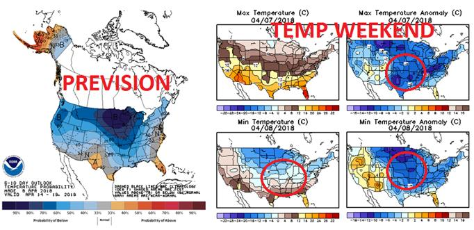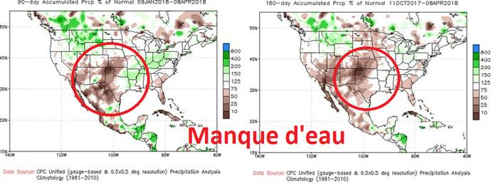 En ce moment parler du blé c’est parler de météo. En fin de semaine passée le mercure a chuté bien en dessous de zéro, en plein dans le blé d’hiver qui sort de dormance. On s’attend à avoir des dommages mais on aura une meilleure idée dans 1-2 semaines. Trop tôt pour savoir. Aussi les prochaines deux semaines sont moches, l’hiver s’étire. J’suis vraiment tanné. Les conditions du blé sont vraiment nulles, seulement 30% du stock est de bonne ou excellente qualité, une autre baisse cette semaine de 2% et une nette baisse par rapport à l’an passé (53%). Le manque d’eau a fait souffrir au Kansas, et le froid n’aide pas. Le blé printemps n’est pas semé et même si l’USDA prévoit un boom dans les acrages, faut-il encore qu’il puisse travailler aux champs. Le sol est gelé solide au Dakota et c’est assez safe de dire que les semis ne seront pas hâtif cette année. Je n’ai pas pesé sur le bouton panique, reste encore plein de temps, mais ce n’est pas un facteur positif pour la qualité et le timing du stock cette année. Par contre la sécheresse dans le blé d’hiver pourrait faire accélérer les récoltes et si le temps/condition le permet ils pourraient ressemer du soja (ou autre céréale).