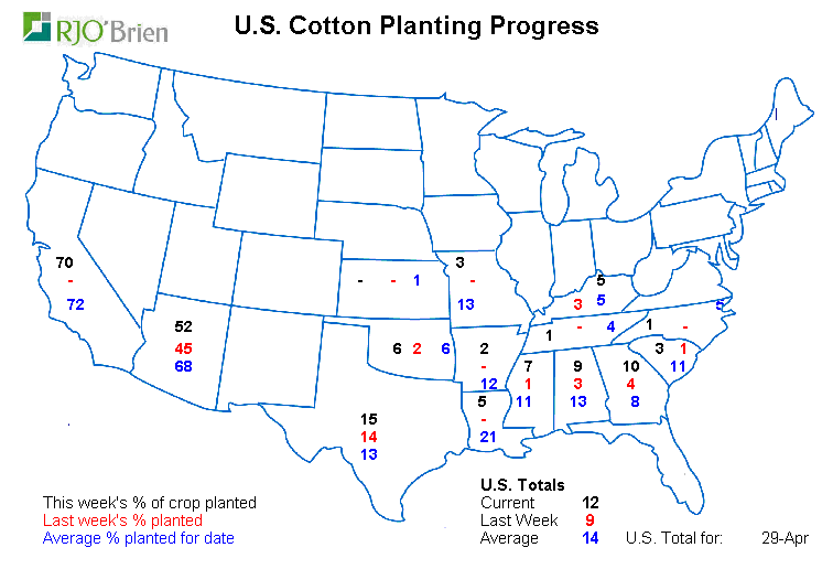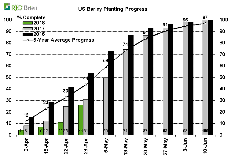 - Maïs américain : 17% de planté vs attentes à 18% ; 5% la semaine dernière; 32% l’an dernier; 27% en moyenne