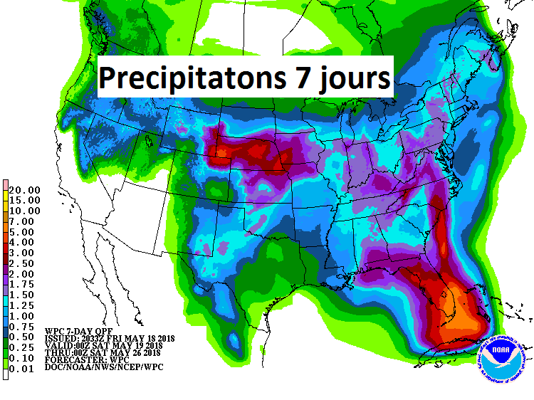 Le blé qui a commencé la semaine de reculons a par la suite connu que des hausses de prix. Bien franchement je pense que c’est plus une question technique d’analyse graphique qu’une question fondamentale. Les conditions des cultures sont moche, mais elles le sont depuis des semaines et donc ce n’est pas une surprise – d’ailleurs depuis un mois même si la qualité bon/excellent est bien en dessous des moyennes, elle a quand même augmenté à chaque semaine depuis avril. D’ailleurs le rapport offre-demande USDA de mai montrait des inventaires encore plus élevé que prévu. Sinon oui au niveau international la météo n’est pas idéal en Australie et en Russie donc cela accentue le mouvement. Aux États-Unis on devrait avoir des précipitations ce weekend dans le wheat belt qui devrait aider aux cultures. À mon avis le mouvement d’aujourd’hui est plutôt technique. Les spéculateurs qui ont détenu un imposant net short sorte de plus en plus et de plus en plus vite leurs contrats.