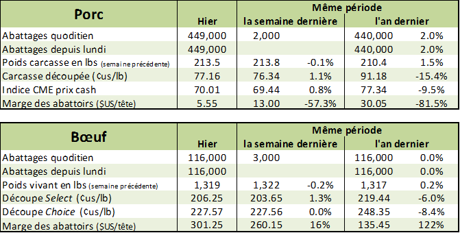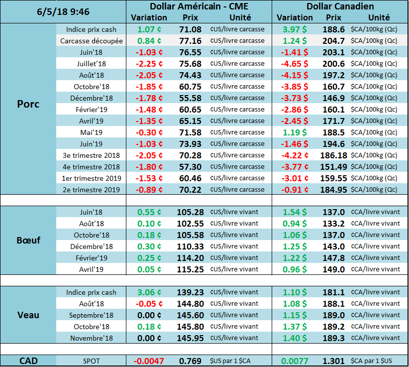 Après des avertissements la semaine dernière, le Mexique est désormais prêt à riposter contre la guerre commerciale de Trump en imposant des tarifs douaniers aux importations de porcs. Les autorités mexicaines ont publié ce matin qu’ils imposeront une taxe de 20% sur les épaules et cuisses de porc (autrement dit, le jambon et jarret). Ces coupes représentent 90% des importations du Mexique et totalisent 1.07 milliard de $US annuellement. Cette taxe pourrait entrer en vigueur aussitôt que demain, mais rien n’a encore été confirmé. Possiblement que le Mexique va laisser quelques jours à Trump pour changer son fusil d’épaule, sinon ils iront de l’avant avec la taxe. Jusqu’au 31 décembre, les autres pays auront une exemption pour 350,000 tonnes d’épaules et cuisses. Bien que cette nouvelle fût attendue après les avertissements, ce n’est pas très positif pour le prix du porc aux États-Unis.
