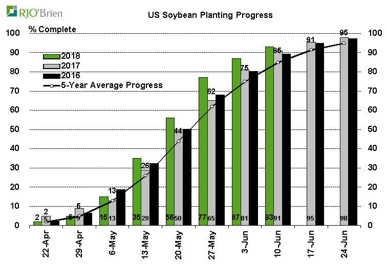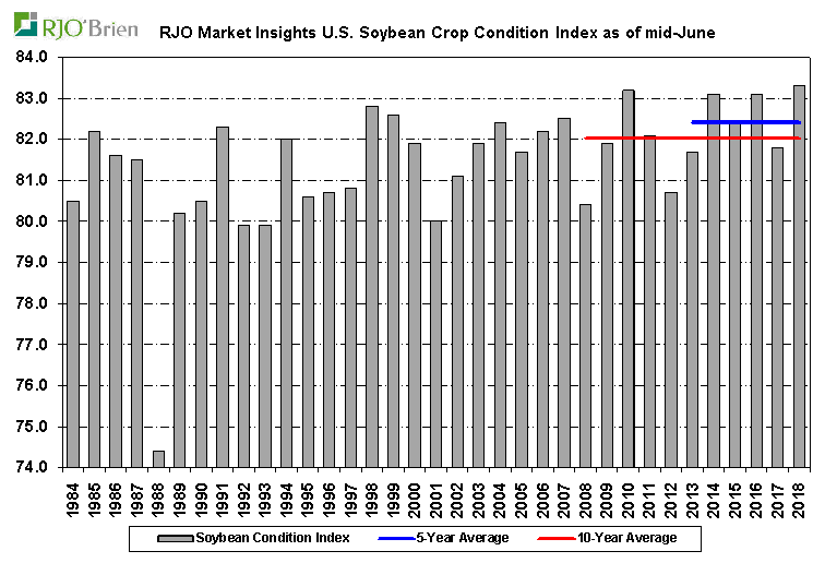 - Soya américain : Baisse de -1% à 74% bon/excellent vs 66% l’an dernier à pareille date.