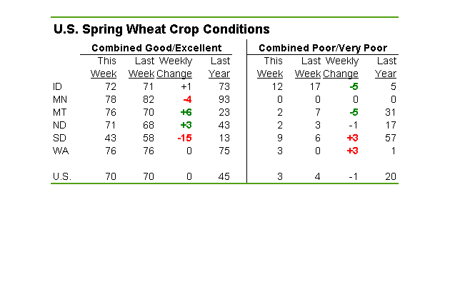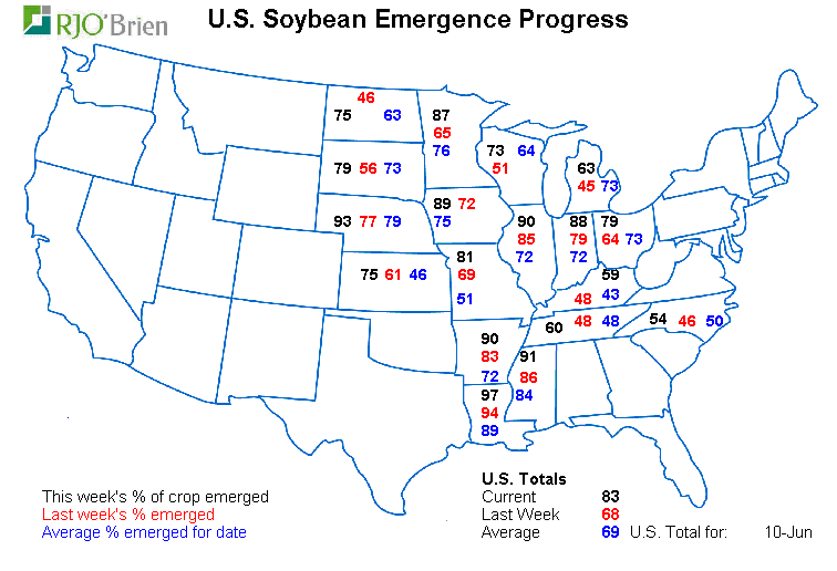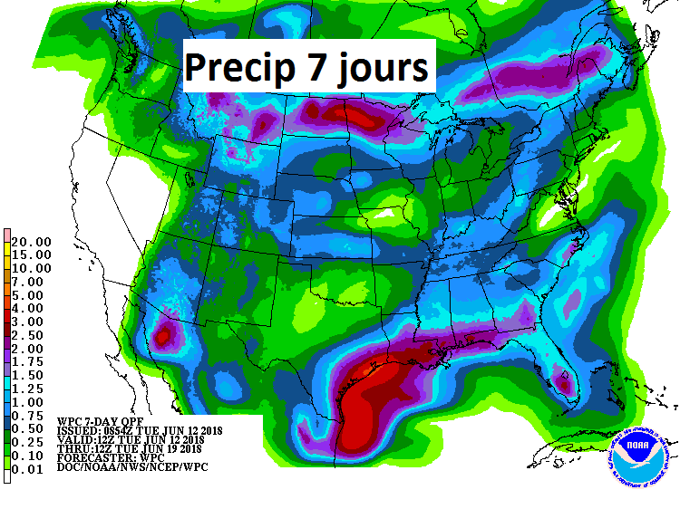 1) Qualité des récoltes très bonnes actuellement. Les semis ont commencés avec un peu de retard, mais la situation s’est redressée à la mi-mai et tout est rentré dans l’ordre assez rapidement. Depuis ce temps la météo coopère fortement et les conditions des récoltes sont une des meilleures depuis des années. La saison de croissance n’est pas finie mais ça part très bien.