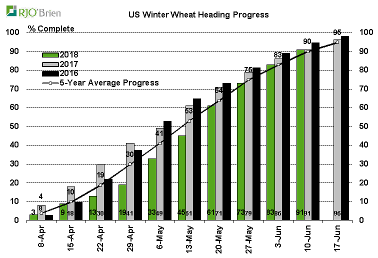- Blé d’hiver américain : Récolté à 14% vs 10% en moyenne