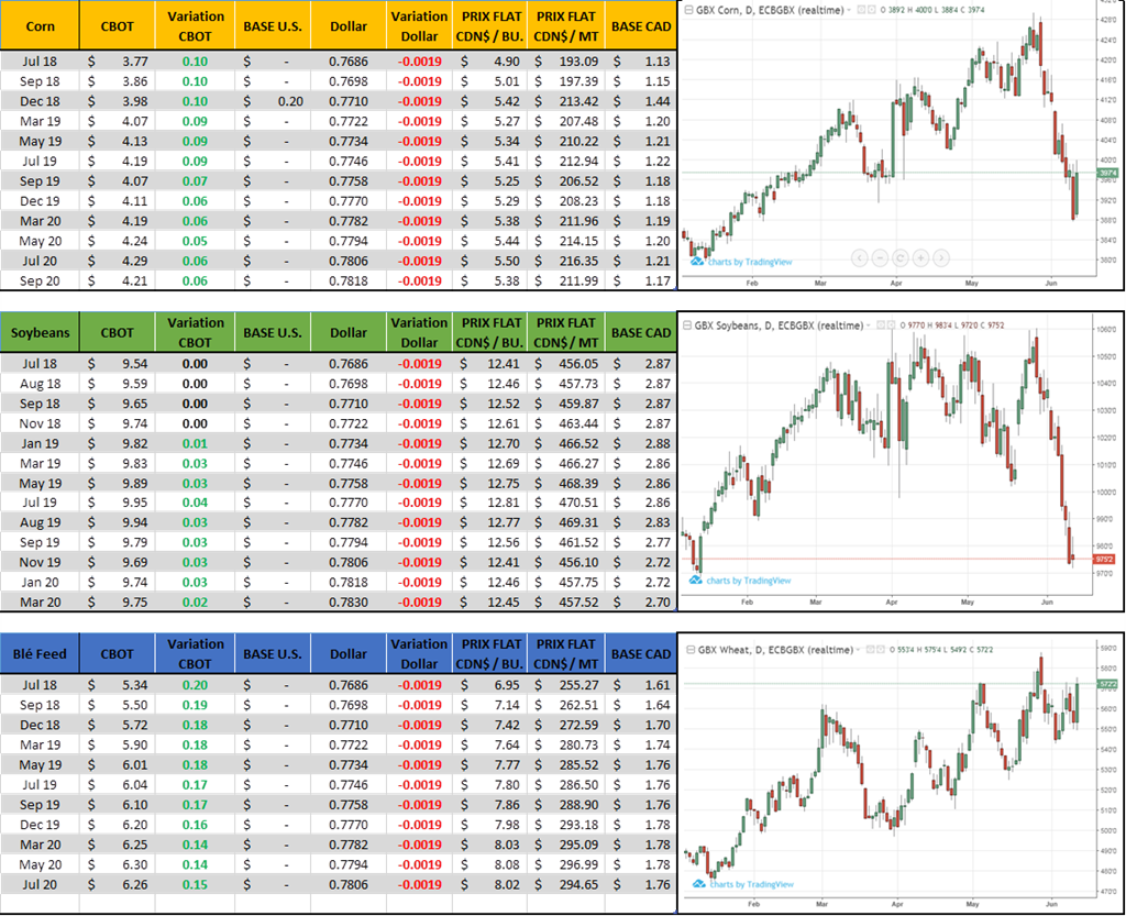 Rapport USDA qui fait grimper les prix à Chicago. Les inventaires sont à la baisse; maïs blé soja. De manière générale je trouve le rapport d’aujourd’hui très cohérent car les inventaires mondiaux sont à la baisse. Le ministère a revu les productions de maïs en Amérique du Sud et Région de la Mer Noire en baisse, ce qui favorise l’export US. C’est très logique… moins d’inventaires ailleurs, les acheteurs vont s’approvisionner plus aux USA. Aussi je pense qu’une partie de la hausse aujourd’hui est attribuable à une correction normale de la baisse d’hier; -11 cents dans le corn hier pour commencer la semaine c’était peut-être un peu fort…