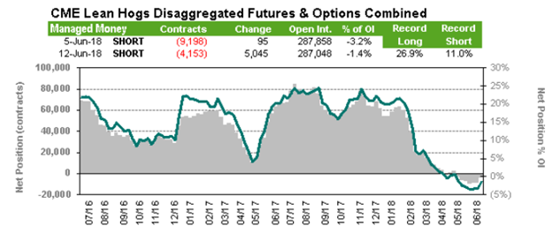 Vendredi, le rapport des positions publié par le CFTC montrait que les spéculateurs étaient vendeurs net de 4153 contrats en date du 12 juin. Les spéculateurs sortaient de leur position courte avec une diminution (achat) de 5045 contrats sur la semaine. Au cours des prochaines semaines, les spéculateurs pourraient continuer de sortir de leurs positions vendeur ce qui pourrait mettre une pression à la hausse sur le prix des CàT à court terme.