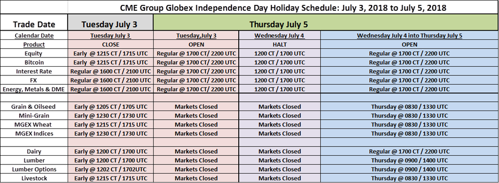 Notez qu’en raison du férié du 4 juillet, la Bourse de Chicago fermera plus tôt mardi le 3 juillet et rouvrira seulement le matin du 5 juillet (produits agricoles):