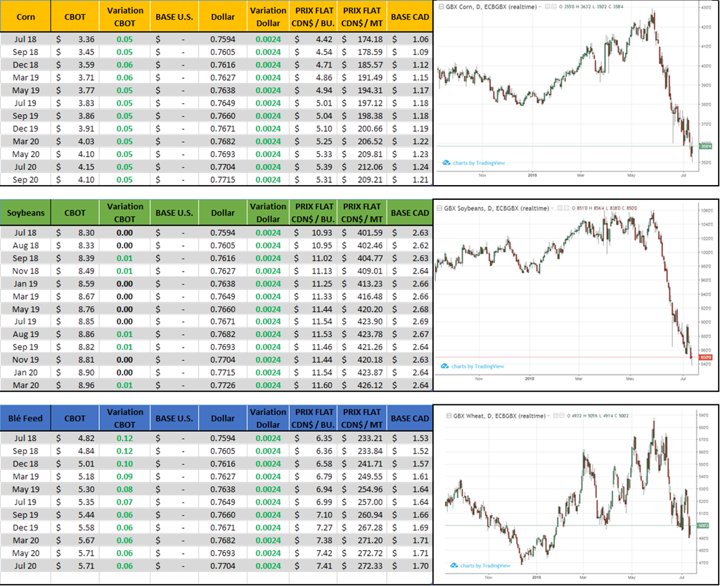 2) Le prix des fèves. La relation n’est pas parfaite et le ratio de prix peut varier, mais si les tensions politiques perdurent entre Trump et la Chine, le prix des fèves risque de limiter le potentiel haussier du corn.