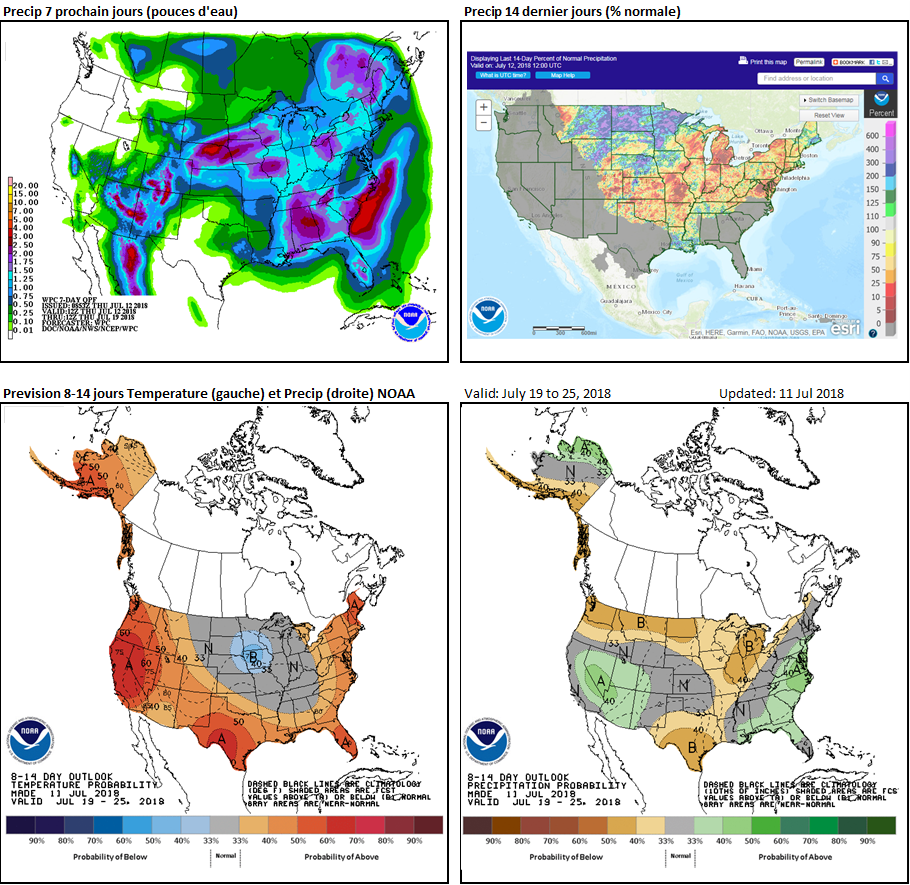 1) L’USDA risque fort probablement de hausser les rendements dans les prochains rapports. Les firmes privées parlent de plus en plus d’une grosse récolte aux USA. Si le rendement passe de 174 actuellement à 178 les inventaires seraient très près du 2 milliard de boisseaux.