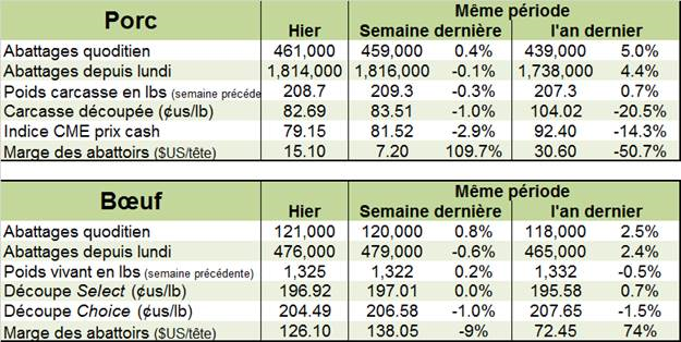 Selon l’USDA, les abattages étaient de 461 000 têtes jeudi ce qui amène le total pour la semaine à 1.814 million de têtes. Cela se compare à 1.811 million de têtes la semaine dernière et 1.732 million de têtes pour la même période l’an dernier, soit une hausse de +4.7%.