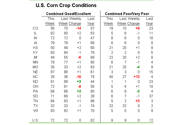- Maïs: qualité inchangé à 72% bon/excellent (62% en 2017)