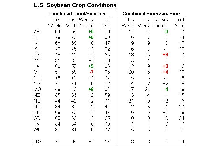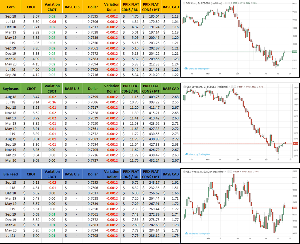 - Soja: qualité +1% à 70% bon/excellent (57% en 2017)