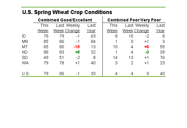 - Blé Printemps: qualité -1% à 79% bon/excellent (33% en 2017)