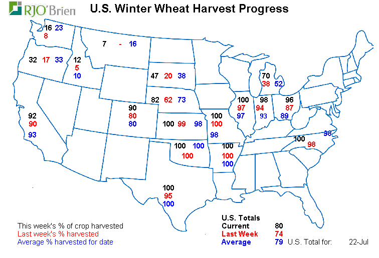 - Blé hiver: 80% récolté dans les temps (79% en moyenne)
