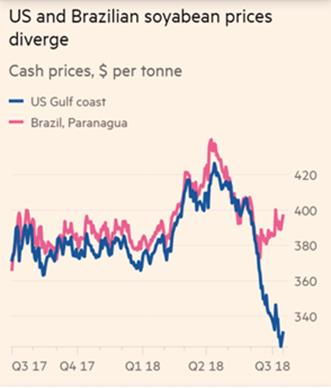 Les tarifs ont créé une double tarification. Je m’explique. Étant donné que le plus gros acheteur est la Chine, et que la Chine est sujet aux tarifs américains, le prix de référence devient en quelque sorte le prix US + tarif = prix mondial de la fève. Les Brésilien sont futés, ils vont en profiter pour offrir le prix au Chinois un peu plus faible que le prix US tarifé, mais ils empochent une énorme prime car ils savent qu’ils sont les seuls à pouvoir approvisionner la Chine. AHHH le capitalisme! Donc les acheteurs européens qui disent qu’ils veulent acheter du soja US c’est bien évident, en réalité est-ce que l’Europe veut vraiment du stock « américain » ou ils veulent du stock « bon marché ». Je pense pour le 2e. Aussi pour compenser les parts de marché que représente la Chine, je pense qu’il est trop tôt pour être confiant que l’Europe pourra compenser les ventes asiatiques.