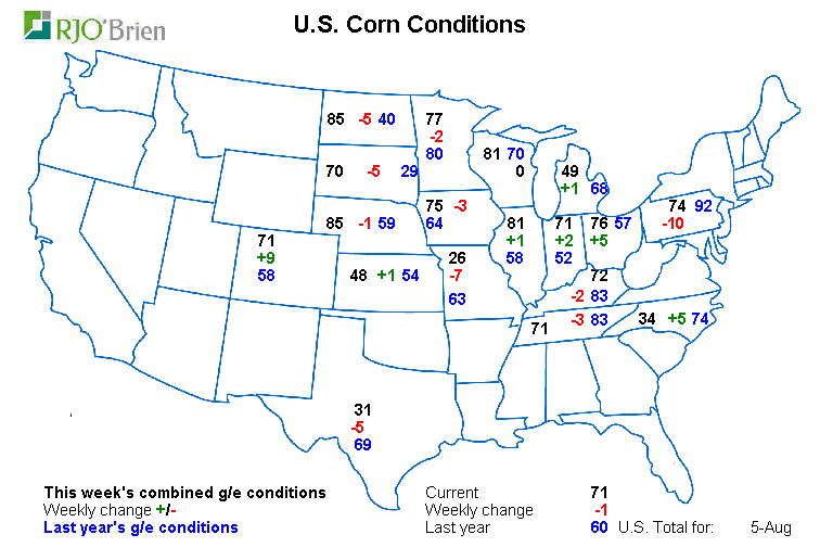 USDA nous donnera plus d’info sur le sujet vendredi, mais avec l’état des cultures qui sont nettement meilleure que l’an dernier (rendement record) plusieurs experts prévoient une très bonne récolte.