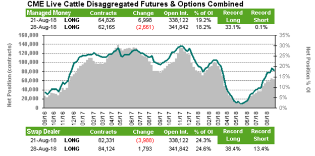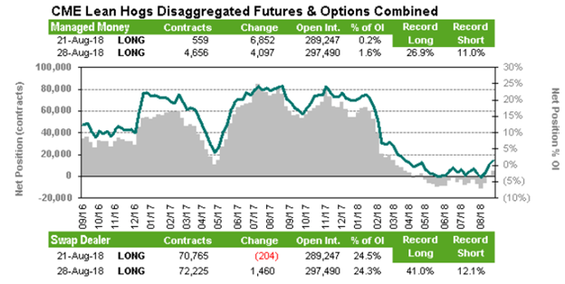 Vendredi, le rapport des positions publié par le CFTC montrait que les spéculateurs étaient acheteurs net de 4656 contrats, une augmentation (achat) de 4097 contrats sur la semaine. Nous sommes d’avis que les spéculateurs seront nerveux sur le marché si la peste porcine africaine prend de l’ampleur en Chine. Dans ce contexte, leurs positions pourraient rapidement augmenter au cours des prochaines semaines.