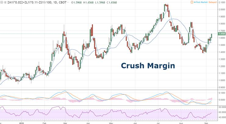 Les contrats de novembre SX8 ont fini en baisse de 14 cents et retrouvent le fond de la cave avec les Canadiens de Montréal. Novembre à 8.31 $bu est très près de supports. Comme le corn les conditions des récoltes sont meilleures cette semaine, la maturité aussi est en avances les feuilles commencent à jaunir/tomber. Coté export c’est très mou, genre paire de jogging au chalet quand il pleut, car on a vu des annulations de commande fort probablement de la Chine. Le conflit avec la Chine et le rendement record aux USA complique vraiment les choses. En plus au Brésil le président a donné sa démission, ça brasse dans le pays et la monnaie continue de se dévaluer! Plus la monnaie brésilienne se déprécie, plus les cultivateurs ont un prix élevé pour leur récolte (leur bases locales exploses!). Bref beaucoup d’éléments négatifs pour le marché des fèves. La demande pour la protéine (tourteau) est très forte et limite le potentiel de baisse. Les spreads de tourteau sont ferme, et le crush margin est en hausse.
