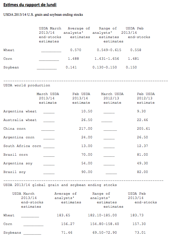 - Rapport USDA lundi midi, les estimés sont au bas du courriel.