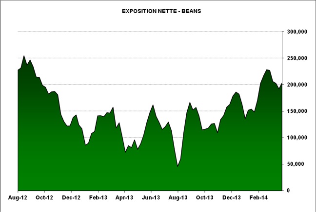 Soya : -1 à 14.73 sur mai 2014 et +5 à 12.08 sur nov. 2014