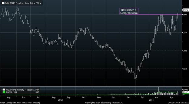 Graphique1 - prix du blé de Kansas – Livraison décembre 2014-04-29