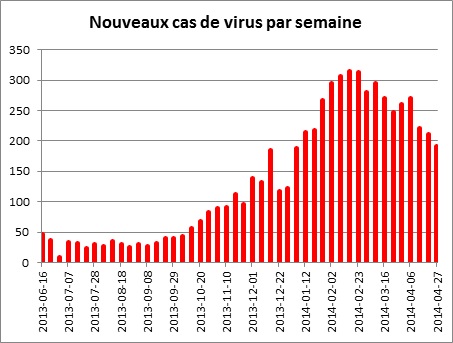 Graphique 2 – Nouveaux cas de virus DEP à 191 pour la semaine du 27 avril