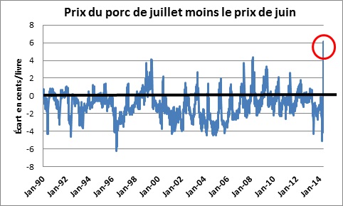Graphique 1 – Écart entre le contrat du porc de juin et juillet