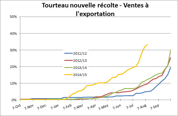 Graphique 5 – Progression des ventes à l’exportation : Tourteau nouvelle récolte