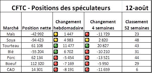 Tableau 1 – Positions des spéculateurs au 12 août 2014