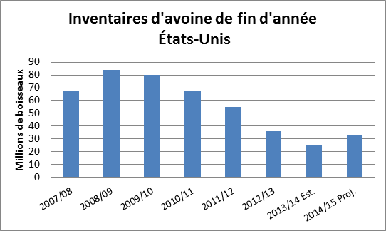 Graphique 2 – Inventaires d’avoine de fin d’année aux États-Unis
