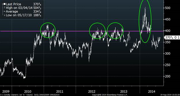 Maïs: +1 ¾ à 3.62 ½ sur septembre et + ¾ à 3.72 ¼ sur déc. 2014