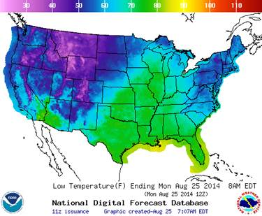 Graphique 2 – Température de la nuit du 25 août (en fahrenheit)