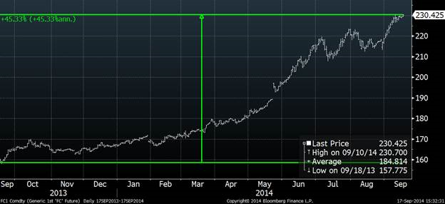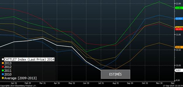 Bœuf : +0.55 à 156.75 sur octobre et +0.78 à 159.65 sur décembre 2014