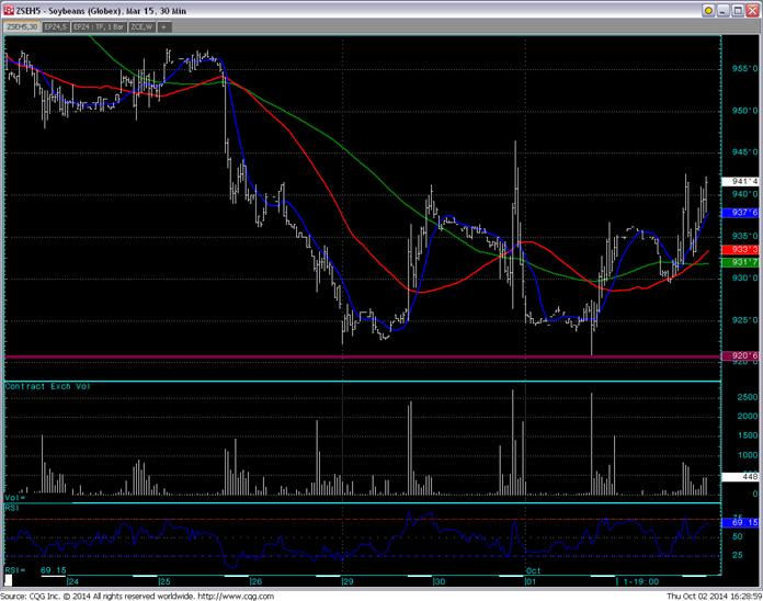 Soya : + 7 à 9.25 sur nov’14 et + 6 à 9.49 sur nov’15
