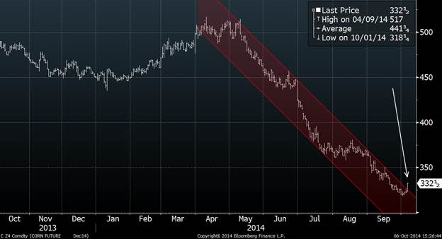 Graphique 1 – Prix du maïs pour les livraisons décembre 2014