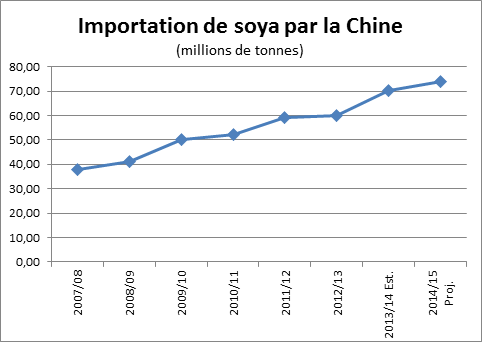 Soya : +28 ½ à 10.06 sur nov’14 et +21 à 9.98 ¼ sur nov’15