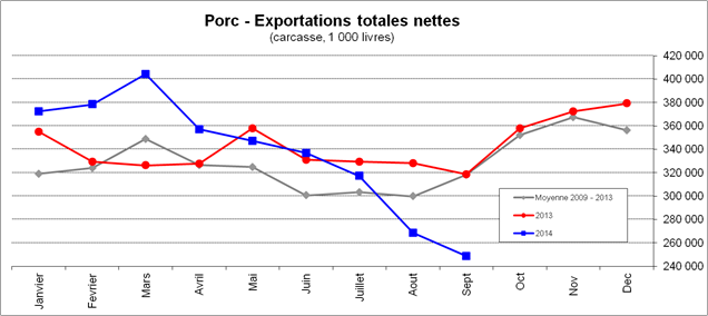 Graphique 1 – Exportations nettes de porc