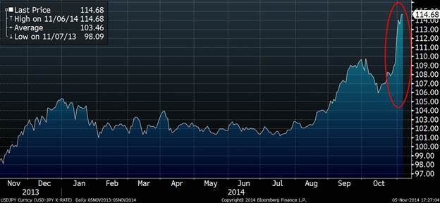 Graphique 2 – Yen japonais / $ américain (combien de yen pour 1 $US)