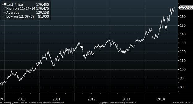 Bœuf : +0.55 à 170.20 sur déc’14 et +0.75 à 160.38 sur juin’15