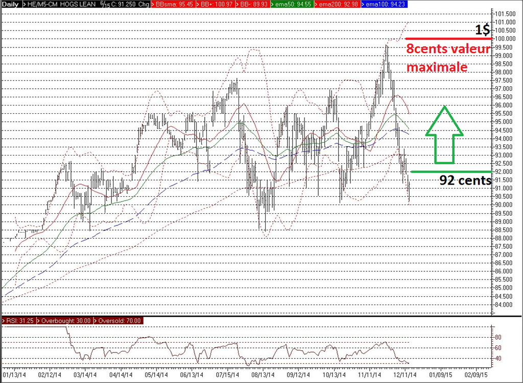 En dépit de cette hausse spectaculaire, les contrats à terme de l’été (juin, juillet et août) dans les quatre (4) derniers étés, ont touché 1$ / lbs carcasse et plus.