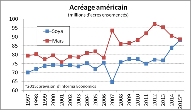 Graphique 1 – Acréage américain depuis 1997
