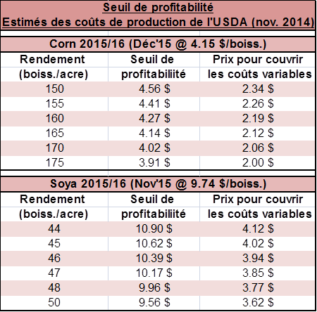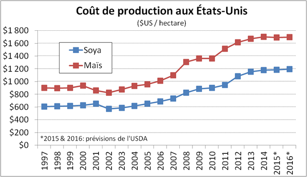 Source : USDA pour les estimés des coûts de production