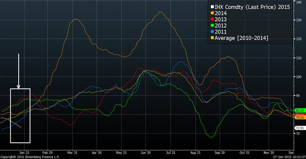 En fait, ces données sont un symptôme. Un symptôme d’une production très élevée et une incapacité à absorber cette augmentation significative de l’offre. Les américains ont augmenté de 4.3% la production pour 2015 au même moment ou leurs exportations sont en danger compte tenu de la force du dollar américain et du retrait des importations russes sur les marchés internationaux. Bien simplement, l’offre est nettement plus élevée que la demande et cela met une pression énorme sur les cours.