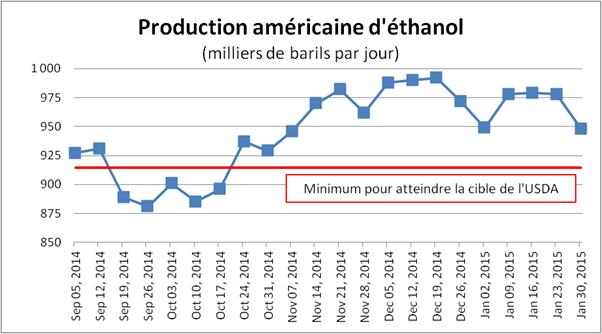 Graphique 2 – Production journalière d’éthanol aux États-Unis