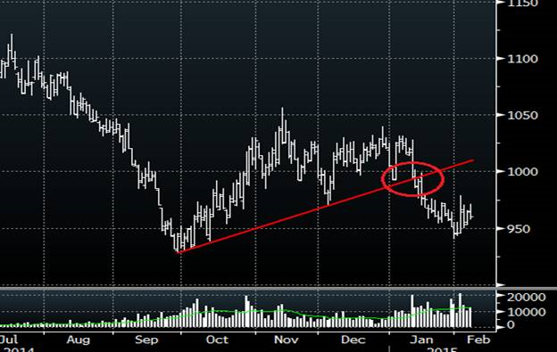 Le prix du soya pour la nouvelle récolte continue de baisser et la tendance est négative depuis la brisure de la ligne de support le 13 janvier dernier suite à la publication du dernier rapport de la USDA. Le volume sur la cassure avait été très important également confirmant ainsi le mouvement.