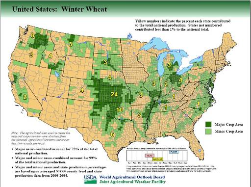 Zones importantes de production de blé d’hiver