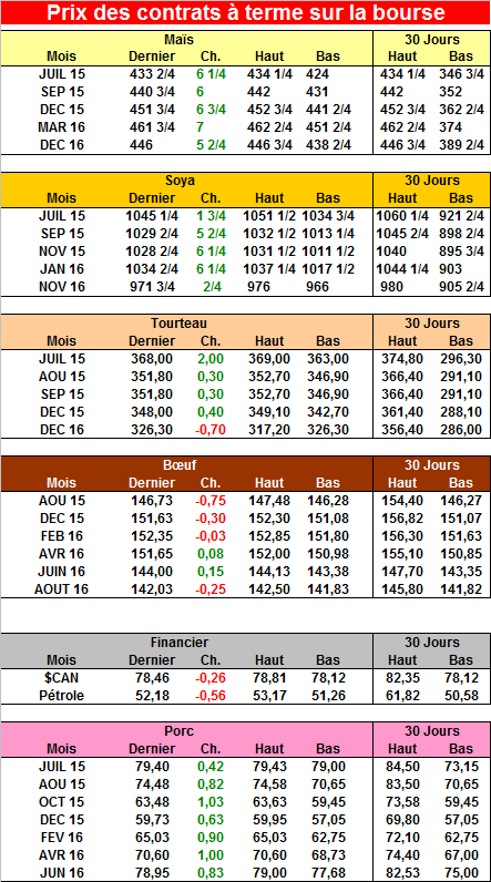 - Le prix de la découpe en hausse de 1.24 cent aujourd’hui.